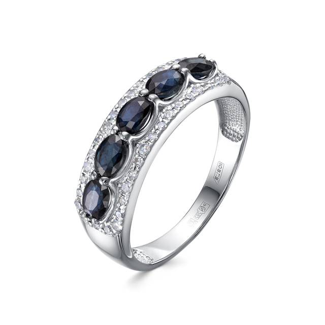 Кольцо из белого золота с бриллиантами и сапфирами (058843)