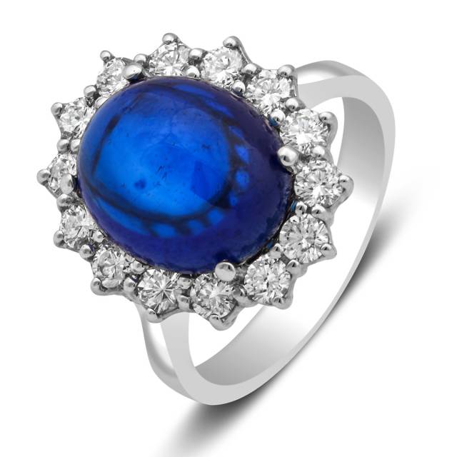 Кольцо из белого золота с бриллиантами и сапфиром (013743)