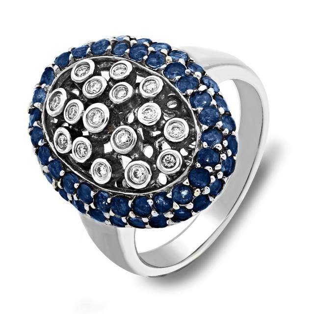Кольцо из белого золота с бриллиантами и сапфирами (022206)