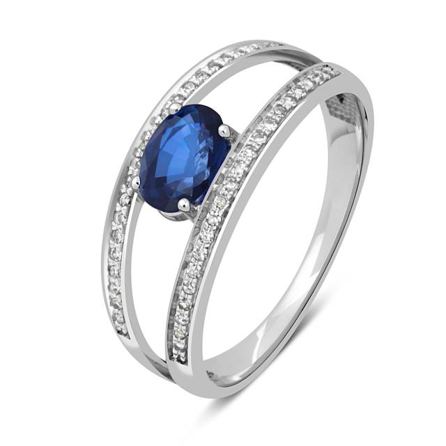 Кольцо из белого золота с бриллиантами и сапфиром (045514)