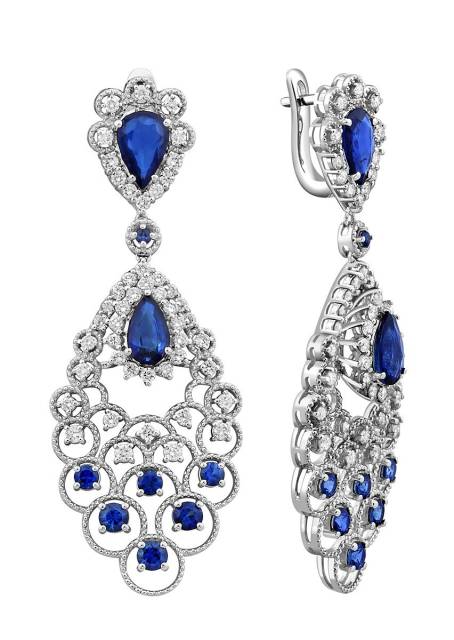 Серьги из белого золота с бриллиантами и сапфирами (050789)