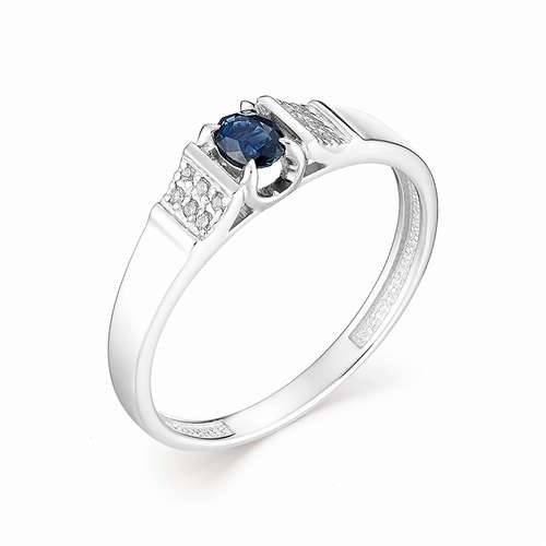 Кольцо из белого золота с бриллиантами и сапфиром (032967)