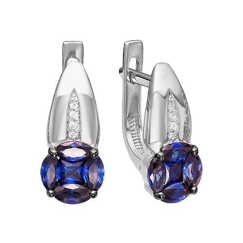 Серьги из белого золота с бриллиантами и сапфирами (040018)