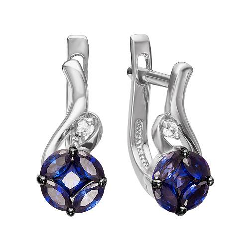 Серьги из белого золота с бриллиантами и сапфирами (040619)