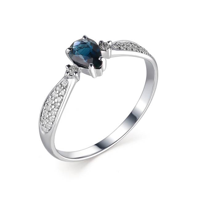 Кольцо из белого золота с бриллиантами с сапфиром (040730)