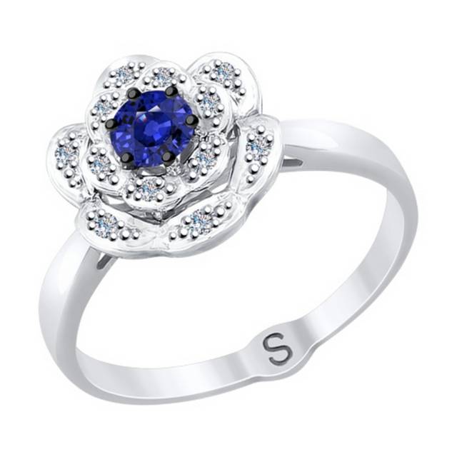 Кольцо из белого золота с бриллиантами и сапфиром (038402)