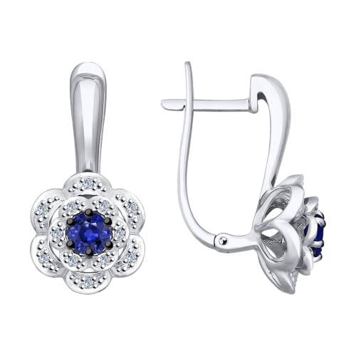 Серьги из белого золота с бриллиантами и сапфирами (040800)
