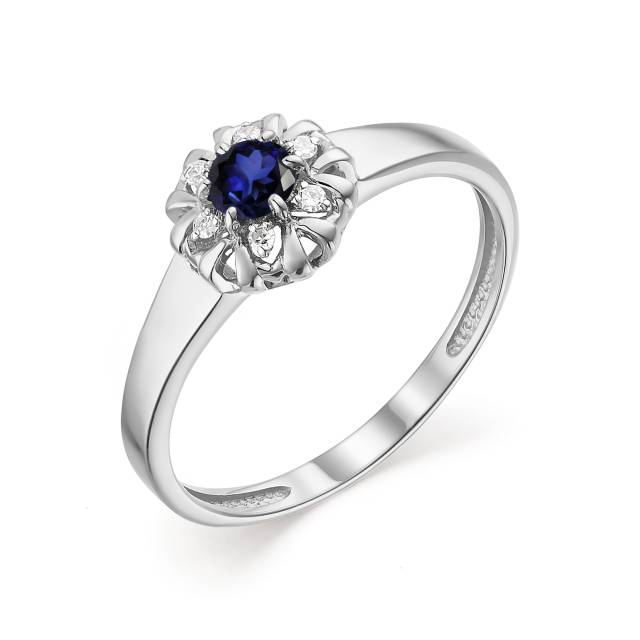 Кольцо из белого золота с бриллиантами и сапфиром (041867)