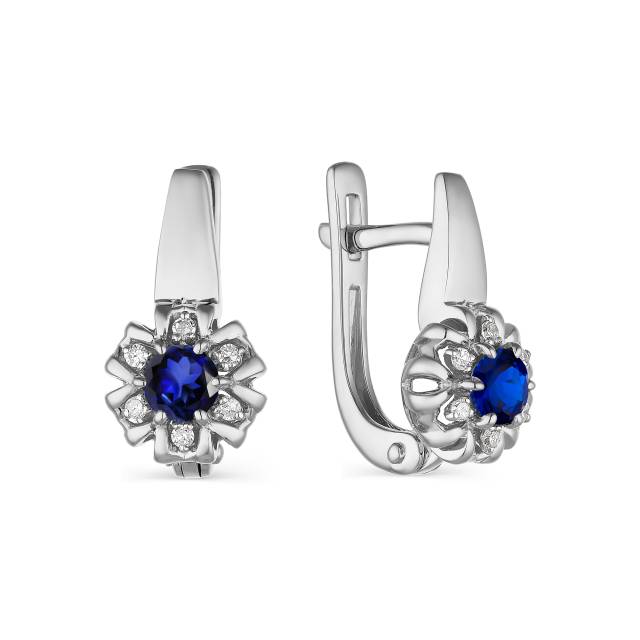 Серьги из белого золота с бриллиантами и сапфирами (028208)