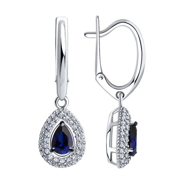 Серьги из белого золота с бриллиантами и сапфирами (043901)