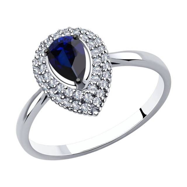 Кольцо из белого золота с бриллиантами и сапфиром (043900)