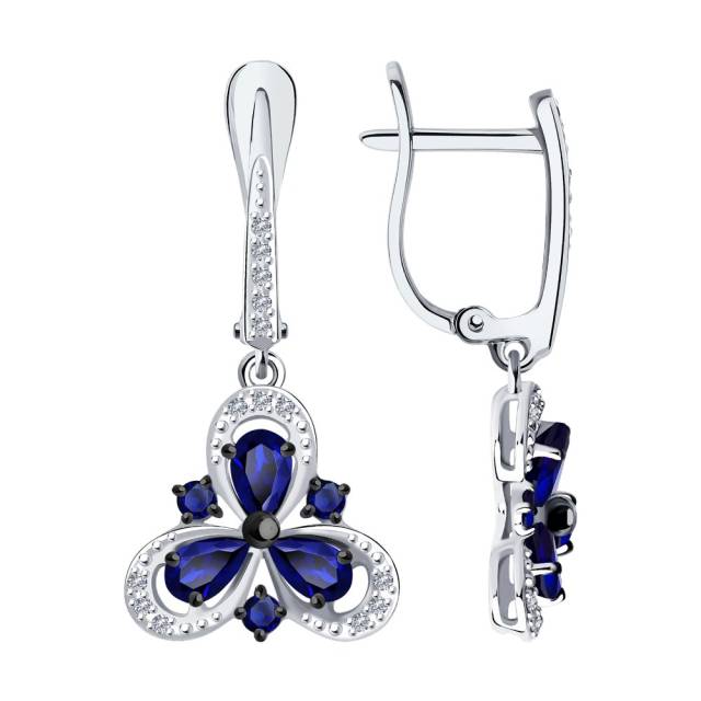 Серьги из белого золота с бриллиантами и сапфирами (043980)