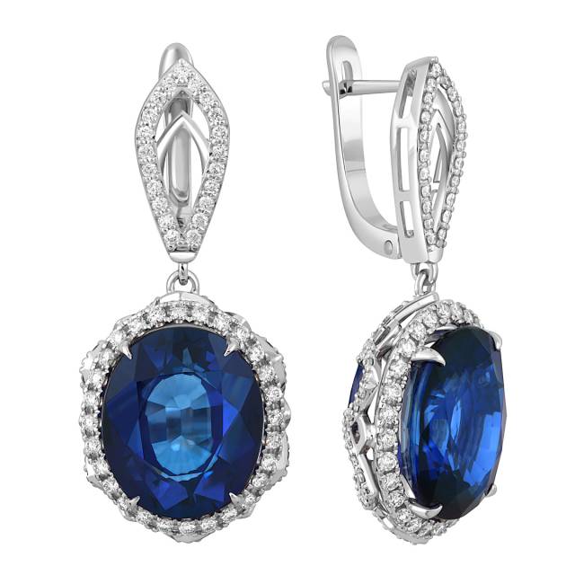 Серьги из белого золота с бриллиантами и сапфирами (031493)