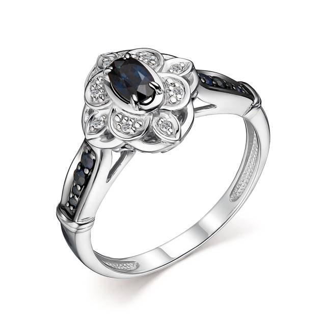 Кольцо из белого золота с бриллиантами и сапфирами (048324)