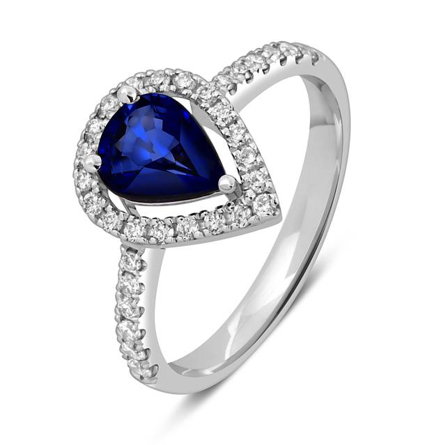 Кольцо из белого золота с бриллиантами и сапфиром (049392)