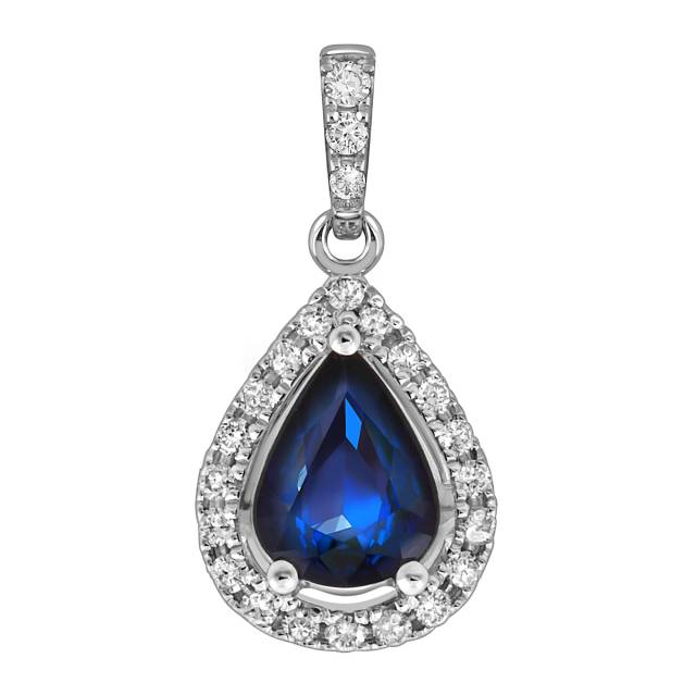 Кулон из белого золота с бриллиантами и сапфиром (052550)