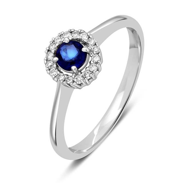 Кольцо из белого золота с бриллиантами и сапфиром (050815)