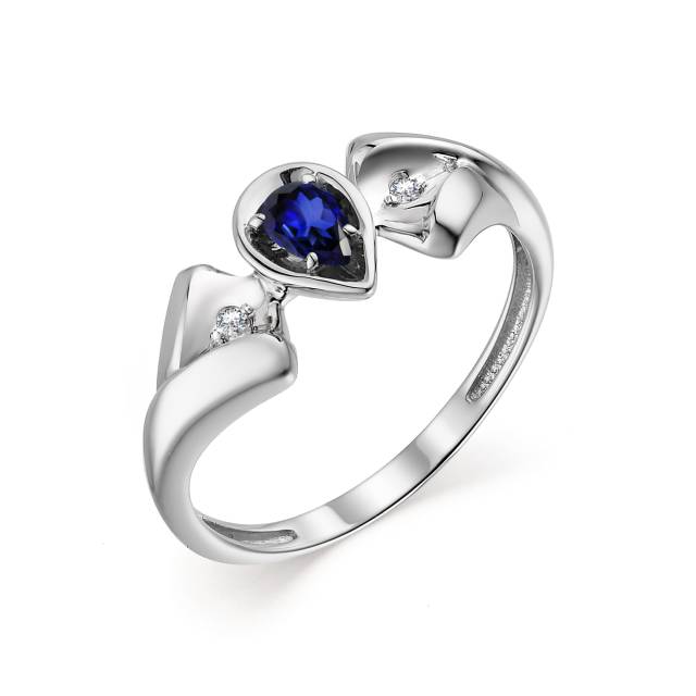 Кольцо из белого золота с бриллиантами и сапфиром (050761)