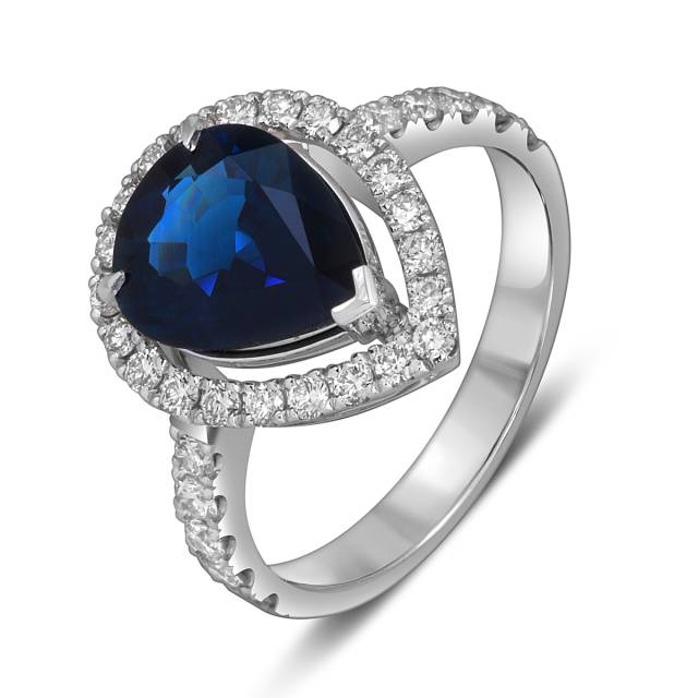 Кольцо из белого золота с бриллиантами и сапфиром (053774)