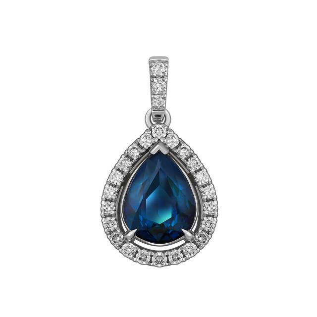 Кулон из белого золота с бриллиантами и сапфиром (053773)