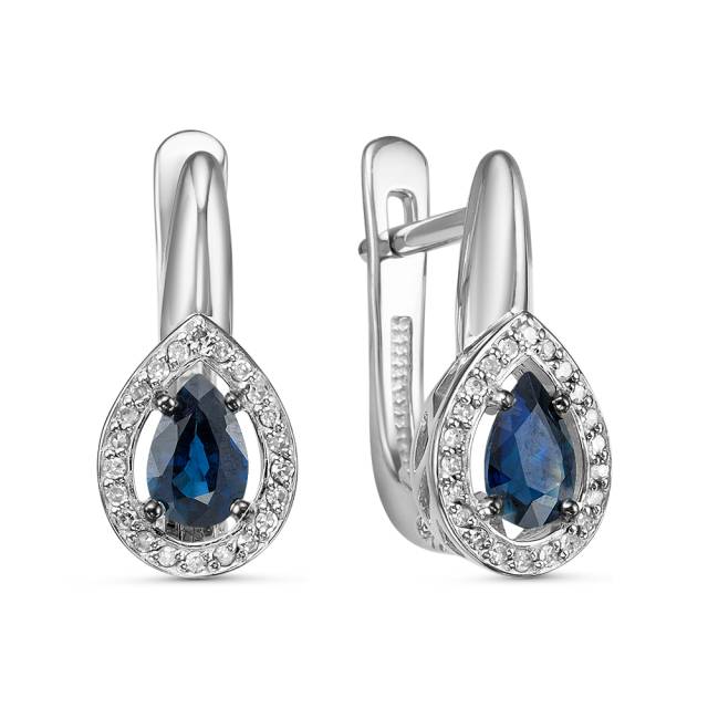 Серьги из белого золота с бриллиантами и сапфирами (060482)