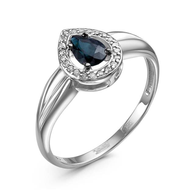 Кольцо из белого золота с сапфиром и бриллиантами (060483)