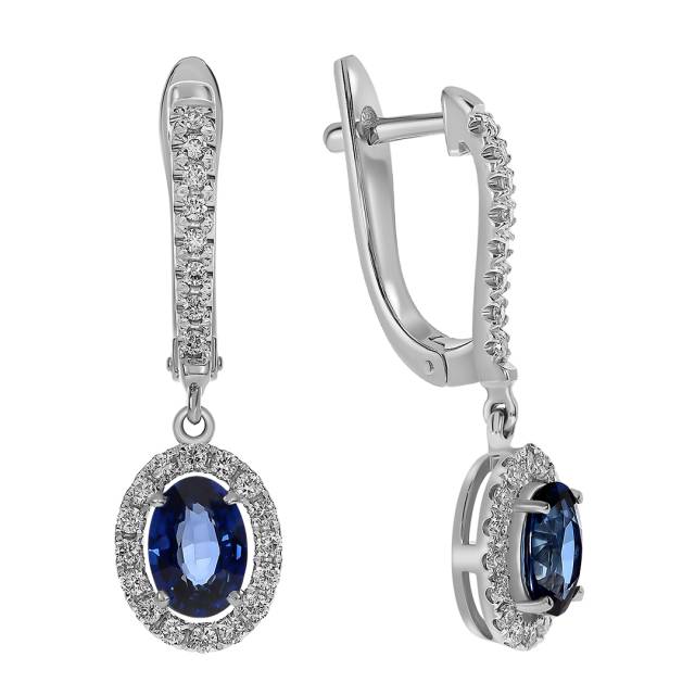 Серьги из белого золота с бриллиантами и сапфирами (060545)