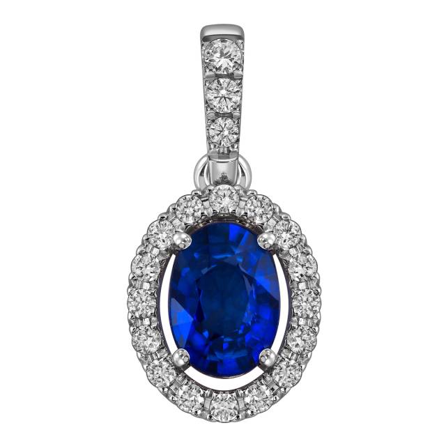 Кулон из белого золота с бриллиантами и сапфиром (062768)