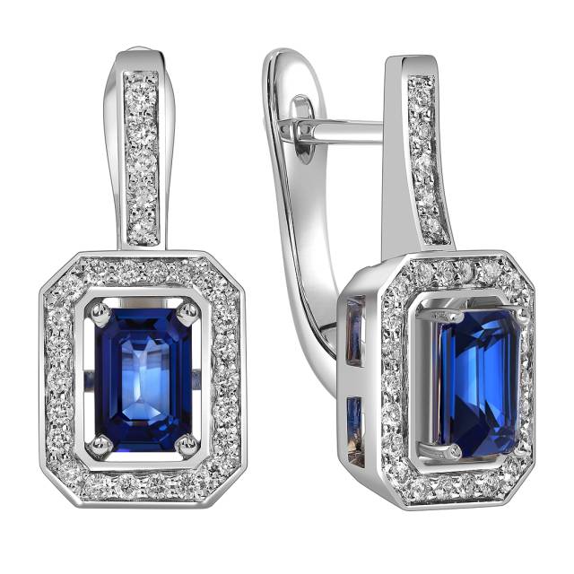Серьги из белого золота с бриллиантами и сапфирами (063643)