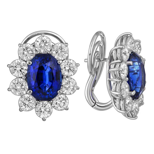 Серьги из белого золота с бриллиантами и сапфирами (001154)
