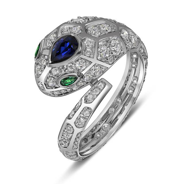 Кольцо из белого золота с бриллиантами и сапфирами (053792)