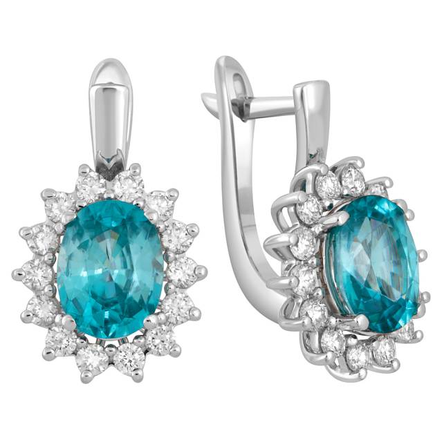 Серьги конго из белого золота с бриллиантами и сапфирами (024602)