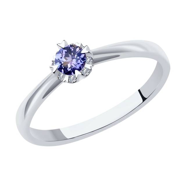 Помолвочное кольцо из белого золота с бриллиантами и танзанитом (049914)