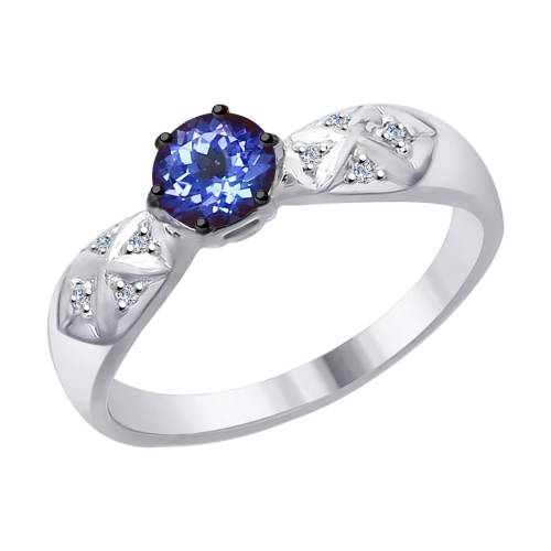 Кольцо из белого золота с бриллиантами и танзанитом (042345)