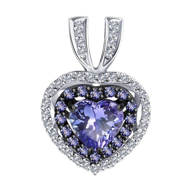 Кулон из белого золота с бриллиантами и танзанитом (047118)