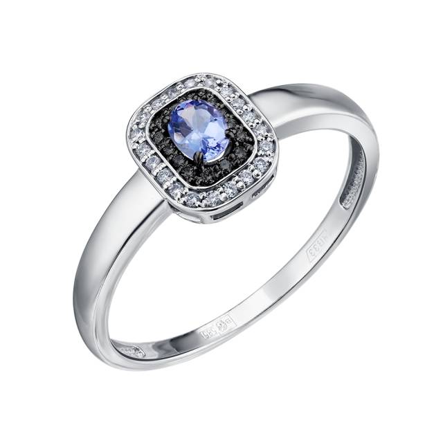 Кольцо из белого золота с бриллиантами и танзанитом (051447)