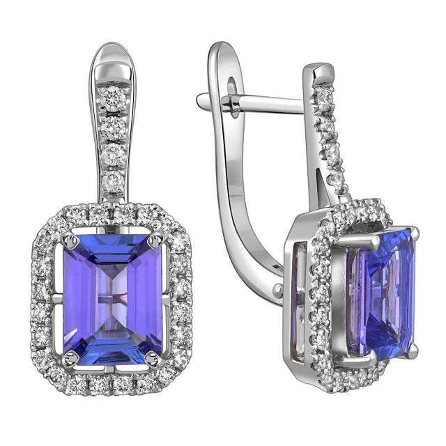 Серьги из белого золота с бриллиантами и танзанитами (054475)