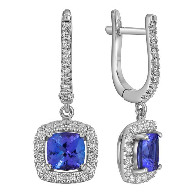 Серьги из белого золота с бриллиантами и танзанитами (062782)