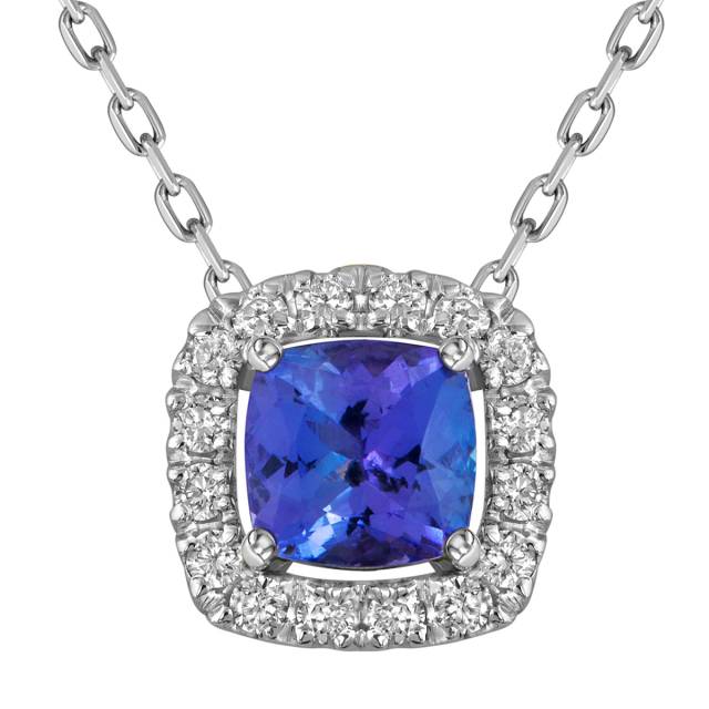 Колье из белого золота с бриллиантами и танзанитом (055649)