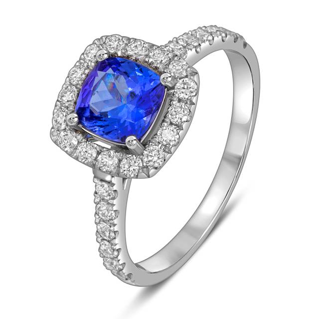 Кольцо из белого золота с бриллиантами и танзанитом (055657)