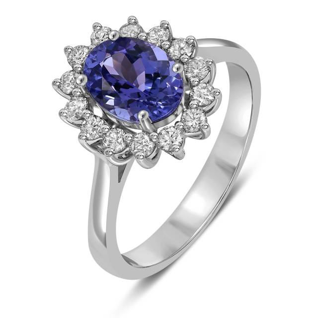 Кольцо из белого золота с бриллиантами и танзанитом (061602)