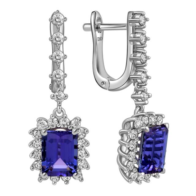 Серьги из белого золота с бриллиантами и танзанитами (061659)