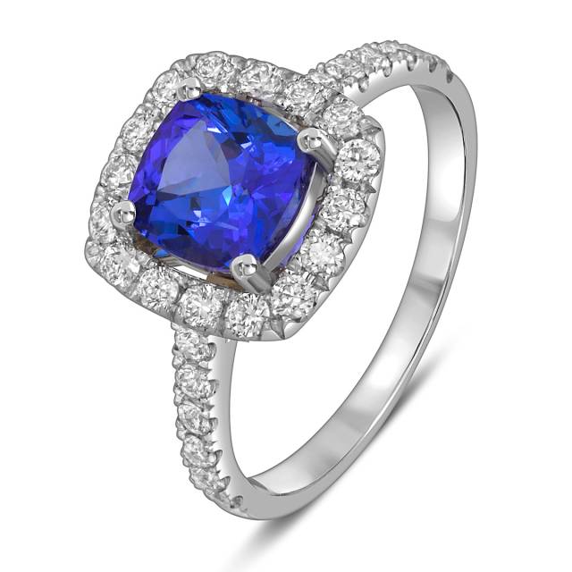 Кольцо из белого золота с бриллиантами и танзанитом (055647)