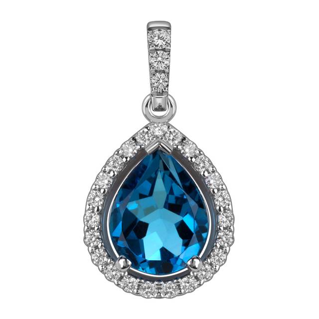 Кулон из белого золота с бриллиантами и лондон топазом (060159)