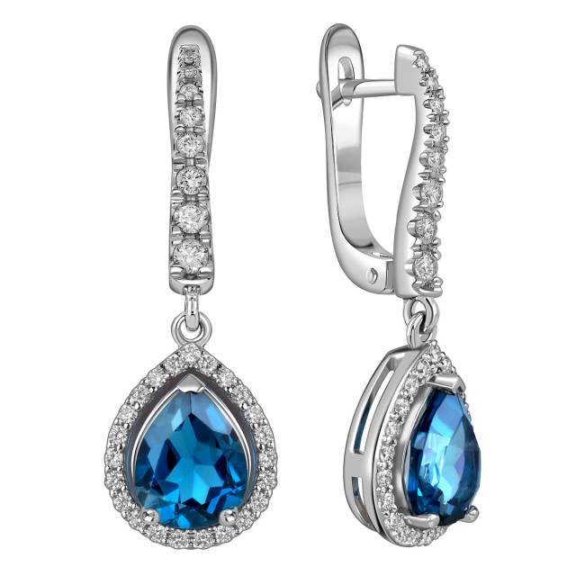 Серьги из белого золота с бриллиантами и топазами (060179)
