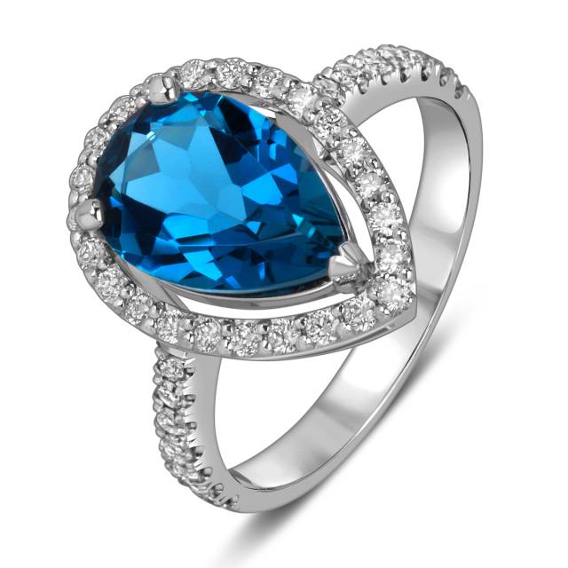 Кольцо из белого золота с бриллиантами и лондон топазом (060359)