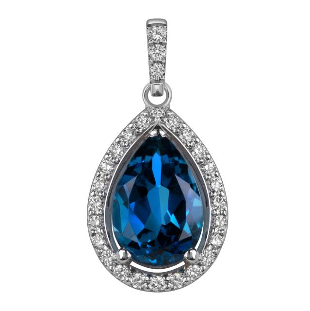 Кулон из белого золота с бриллиантами и лондон топазом (060156)
