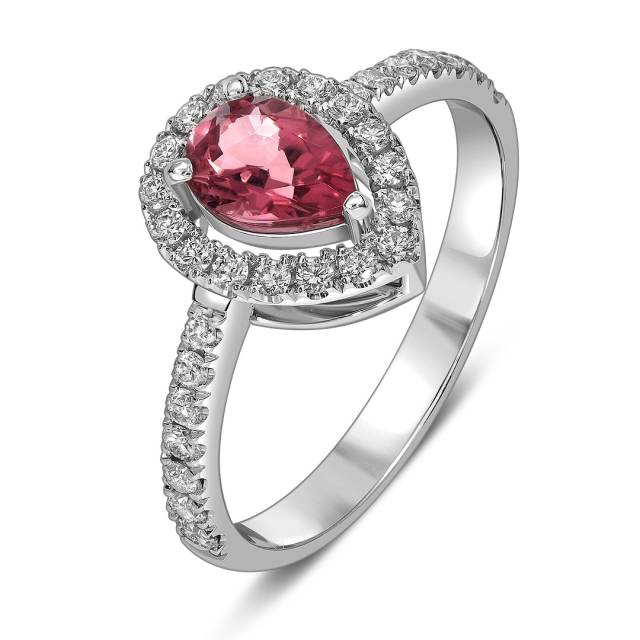 Кольцо из белого золота с бриллиантами и турмалином (062630)