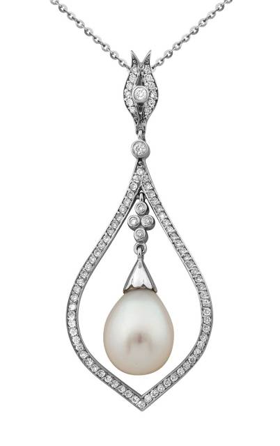 Колье из белого золота с бриллиантами и жемчугом (002417)