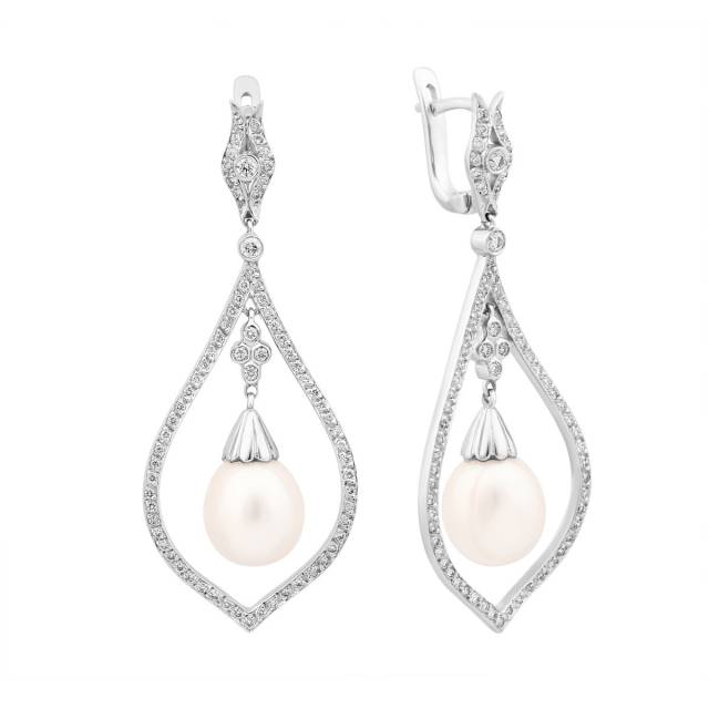 Серьги из белого золота с бриллиантами и жемчугом (002416)